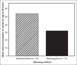 * Patients who are warmed with a warming gown will use different quantities of opioid during the first 48-hour postoperative period than patients warmed with a standard cotton blanket.