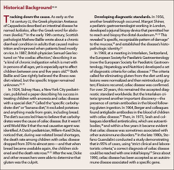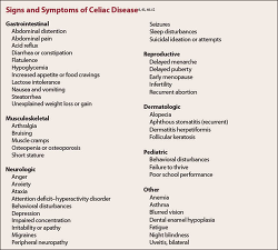 Although a plethora of articles have been written about this illness, many nurses and other clinicians are unaware of its prevalence and its ramifications. Celiac disease affects 0.5% to 1% of the U.S. population, according to a 2004 consensus statement by the National Institutes of Health, which also concluded that the disease "is widely underrecognized."3 Yet clinicians are still being taught that celiac disease is a childhood illness, so that when adults present with its signs and symptoms, diagnosis is often missed or markedly delayed. The average time from onset of symptoms to diagnosis for adults in the United States is 10 years.4 The authors of this article have either personally endured or witnessed the misery of misdiagnosis. This article provides an overview of celiac disease, outlines the pathophysiology, discusses signs and symptoms and the four types of celiac disease, and addresses diagnosis and disease management. In the interest of raising nurses' awareness, we offer our own illustrative stories as well.