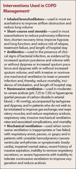 For an overview of the COPD interventions discussed below and the reasons for their use, see Interventions Used in COPD Management.5