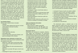 Upon admission to the agency, any home care client taking nine or more medications, including over-the-counter and herbal products, is offered a pharmacist home visit. (For a case scenario, see Box 2.) In addition, nurses, occupational therapists, and physical therapists can make client referrals on a case-by-case basis. A scheduler then contacts each client to offer the service. Interestingly, 60% of the clients accepted the visit and 40% of the clients refused the visit, often because of perceived lack of benefit, fear of offending their primary care physicians, or wanting to limit the number of individuals entering their homes. The pharmacist typically sees as many as five clients per day, with home visits lasting between 30 and 60 minutes. Client revisiting will be discussed later in this article.