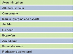 The top 10 medications implicated in medication-related problems are listed in Table 1. Acetaminophen was commonly used at doses that were too high or was not given on a scheduled basis, when indicated, to control pain. Ibuprofen was implicated in medication-related problems such as fluid retention and stomach upset or it was used on a scheduled basis unsafely without an indication. Often, clients who had just been discharged from the hospital were taking omeprazole, a medication that decreases acid production in the stomach, even though they had no indication for it. Clients experienced hyperglycemia because insulin doses were too low. Some clients experienced hypoglycemia when they continued to use the same doses of insulin despite changing eating habits or losing weight. Detailed review and demonstration of inhaler technique was very important to resolve problems with incorrect use of albuterol and fluticasone-salmeterol. Additionally, clients often misused these medications by taking albuterol too frequently and not using fluticasone-salmeterol consistently or at too low of a dose.
