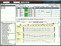 The display of color-coded scores on the screen savers provided the charge nurse with a readily accessible tool for continuously monitoring all patients on the unit. Two buttons located in the center of the screen saver and labeled "VSA Scoring" and "VS Trend" allow the nurse to view either scoring information or vital sign trends for a selected patient (see Figures 3 and 4).