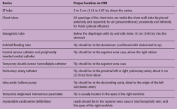 Once the CXR has been reviewed in a systematic fashion, examine the CXR for devices such as catheters, tubes, drains, or wires. Get into the habit of checking their position. (See Locating devices on a CXR.)