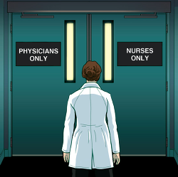 I was wrong. There were staff meetings for nurses only and I wasn't invited. I was expected to go to medical staff meeting weekly-except on the weeks when the meetings were physicians only. I received a message, loud and clear, that I was something different, and I didn't like it.
