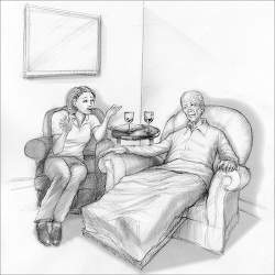 * She has a glass of wine in the evenings with patient.