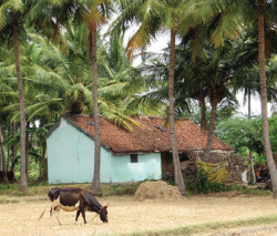 8:30 a.m.: Beautiful flowers of the field, coconut leaves swaying in the breeze, the smell of the morning lilies, and the sunshine over the golden green paddy fields all together remind Greeda that they have arrived at the village.
