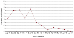 As these new best practices became routine, pressure ulcer prevention became a point of pride throughout the hospital. The average monthly percentage of ITU patients with a hospital-acquired pressure ulcer dropped from 3.09% in January 2010 to 0.54% in March, then bounced up slightly before declining to zero in July 2010. As of April 1, 2014, the hospital has maintained this result.