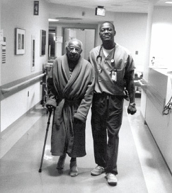 On our cover this month, Edward Dzakpasu, RN, is shown helping his patient, James Dumpson, to ambulate up and down the hallways of Mount Sinai Hospital in New York City. The photographer, Christine Ott Marshall, an NP at Mount Sinai, submitted the photo to AJN's Faces of Caring: Nurses at Work photo contest in 2005. The photo was chosen as one of 13 "judges' choice" winners. Marshall, an RN since 1992 and an NP since 1998, felt that the photo depicted one aspect of nurses' daily work, as well as the growing diversity among nursing staff.