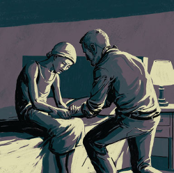 Earlier tonight, I was called to evaluate Molly's change in condition. Her mother and sister, both RNs, have been providing her home care, and they've noticed that something in this 30-year-old woman has shifted. They want my dispassionate clinical eyes. Molly has spent the last two years fighting a cancer that has left her a skeletal ghost. For the past few days, she's been sitting long hours at her bedside, her skeletal self supported by a small army of friends and family. Her eyes stay shut most of the time. I've seen this state before, an internal escape to a place apart from the patient's agonizing passage. Molly's pain and anxiety are, for the most part, held at bay by large, frequent doses of intravenous drugs. It is nausea and vomiting that are her enemy and mine. No medication has been left untried in my effort to provide a peaceful and comfortable death. Our fight has been futile.