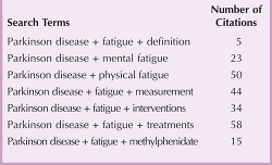 There are several research and practice implications based on this review. First, there is a need for a clear definition of fatigue and its characteristics. There is a need for rich, descriptive, qualitative studies about the experience of fatigue in PD. Data from patient accounts need to be obtained and analyzed to better understand this concept and move toward a more universal understanding of this phenomenon. Second, limitations in the measurement of fatigue exist because of lack of clear defining characteristics noted above and also limited psychometric evaluation of existing instruments in the PD population. Larger studies with representative samples are needed to refine existing instruments. Descriptions of the experience are needed to validate the constructs included in the instruments. In addition, no studies were identified that evaluated for the utility of these instruments in clinical practice. Further studies are needed to determine if these tools are helpful in the office setting and, if so, how often should they be used to assess for fatigue in patients with PD.
