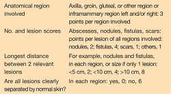 The Sartorius scoring method factors in the number and type of inflammatory and noninflammatory lesions within 7 anatomical regions. However, this scoring system can be time-consuming and difficult to interpret.43 The HS Physician's Global Assessment and Hidradenitis Suppurativa Clinical Response are 2 scores that are mainly used in clinical trials and research.
