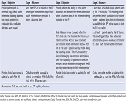 In this column, and subsequent columns, we continue to review the CORE and MENU SET Objectives for Meaningful Use (MU) Stage 1 and Stage 2 (Table).1 As mentioned in previous columns (see The Strategic View of Meaningful Use), we began to review the importance of understanding the penalties, and timeframes for the penalties imposed, if MU documentation was overlooked. According to the Centers for Medicare & Medicaid Services (CMS), starting in 2015, if you are an eligible provider (EP) and have not attested to MU of your electronic health record (EHR) for 2014, penalties are set to increase by 1% yearly for the next several years, ultimately topping out at 4% (http://go.cms.gov/1LbCPHa). After 2018, MU penalties will be folded into a new merit-based incentive payment system.