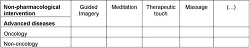 1. What non-pharmacological interventions have been implemented and evaluated to provide comfort in patients with incurable and advanced diseases?