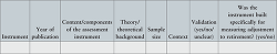 Retire*, Adjust*, Assessment*, Scale*, Measure*, Instrument* and Tool*