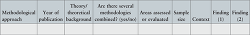 As retirement is a recent topic in research,24 it is possible that some researchers have decided to use other approaches to evaluate and understand retirement adjustment, which can include interviews, focus groups or any other method of data collection. The evaluation criteria that can be present in these methodological approaches are self-esteem, marital status, informal networks, income before and after retirement, planning for retirement, gender differences and activity engagement.