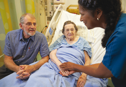 This month's cover photo shows a nurse meeting with a patient and her family caregiver. Being the caregiver for a family member is an increasingly common experience for many Americans. According to a 2015 report by the AARP Public Policy Institute, an estimated 39.8 million Americans care for an adult, spending an average of 24.4 hours a week doing so. Approximately six in 10 caregivers report assisting with medical and nursing tasks, such as injections, tube feedings, and catheter care, but most have not received prior preparation or training.