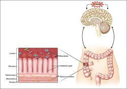 IBS and stress. Stress has been identified as a mechanism in the development of IBS, and the major components of the stress response system-the autonomic nervous system and the hypothalamic-pituitary-adrenal axis-have been the subject of numerous IBS studies. An analysis of medical data collected from active-duty U.S. service members between 2001 and 2009 found the risk of developing IBS was significantly increased in those with a greater number of life stressors, a positive screen for panic syndrome or other anxiety syndromes on the Patient Health Questionnaire, and previous infectious gastroenteritis.17 Posttraumatic stress disorder (PTSD) and depression were also associated with elevated risk, though in this study the increased risk was not found to be significant. Since both depression and PTSD have been significantly associated with IBS in previous studies of military veterans, the investigators attribute their finding to study design. These findings illustrate the interdependence or "cross talk" between the brain and the gut in IBS, a connection commonly known as the brain-gut axis.