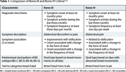 The Rome III criteria for functional GI disorders served as the symptom-based diagnostic criteria for IBS since its release in 2006 until early 2016, when the Rome Foundation updated the criteria with the release of Rome IV (see Table 122, 23).5 Like Rome III, the Rome IV criteria maintains that an IBS diagnosis requires symptoms to be chronic (having persisted for at least six months), active (having occurred within the previous three months), and like all functional bowel disorders, to occur in the absence of an anatomic or physiologic abnormality.23 Requisite symptom frequency, however, has been increased from at least three days per month in Rome III to at least one day per week in Rome IV. Furthermore, in contrast to Rome III, Rome IV specifically calls for abdominal pain (rather than pain or discomfort) to be related to (versus improved with) defecation, and clarifies that it is the abdominal pain (rather than the pain's onset) that must be associated with changes in stool frequency or form.22, 23 In Rome IV, subtyping by predominant stool pattern-as IBS-C (with constipation), IBS-D (with diarrhea), IBS-M (with a mixed stool pattern), and IBS-U (unclassified because of an insufficient consistency of stool abnormality)-is now based on stool form on the days in which at least one bowel movement is abnormal, as opposed to stool form on all days since onset.23 Rome IV retains the Bristol Stool Form Scale24 as a means of categorizing abnormal stool form, using 25% of stools as the threshold for subtyping the stool pattern.23
