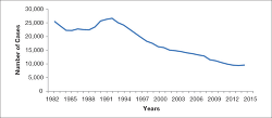 Background. Tuberculosis was a leading cause of death in the United States in the early 20th century. Medical and public health interventions resulted in a steady decline in cases that began in the mid-1950s and continued until the early 1990s, when a tuberculosis resurgence occurred. The resurgence was associated with the emergence of the HIV epidemic, increased immigration from countries with high tuberculosis rates, and declines in funding of tuberculosis control programs in many jurisdictions. After a major reinvestment in tuberculosis control activities at all levels of government, tuberculosis cases began to decline again in 1993. However, after two decades of decline, tuberculosis incidence in the United States has now stalled at approximately three cases per 100,000 persons. In fact, after having declined yearly from 1993 to 2014, the overall number of tuberculosis cases in the United States increased slightly in 2015, from 9,406 to 9,557.1 (See Figure 1.)