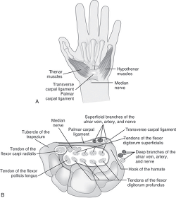 Individuals with CTS often present with complaints of numbness or tingling of the fingers, especially the thumb, index finger, middle finger, and one-half of the ring finger. However, there can be symptoms throughout the entire hand, proximal to the wrist and into the arm and the shoulder (LeBlanc & Cestia, 2011). These symptoms are usually worse at night and into the early morning secondary to relaxation of the wrist into a flexed position during sleep. This positioning coupled with increased blood pressure in the early morning may place more pressure and narrowing at the carpal tunnel (Chammas et al., 2014; Newington, Harris, & Walker-Bone, 2015). Along with nighttime and early morning symptoms, reports of shaking of the hand or flicking of the wrist, known as the flick sign, are often given in the history. Although pain is not usually associated with CTS, some individuals may relate pain to severe paresthesia (Duckworth, Jenkins, & McEachan, 2014). Patients may also report a sensation of hand and finger swelling when not visible, as well as actual swelling with a noted loss of strength or grip in the affected hand (LeBlanc & Cestia, 2011).