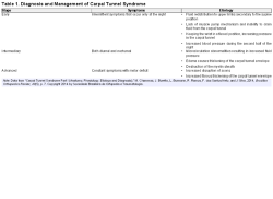 The median nerve is responsible for the sensation of the thumb, index finger, middle finger, and sometimes the ring finger. Because the median nerve enters the hand through a narrow, rigid tunnel formed by the bones of the wrist and the transverse carpal ligament, any injury, inflammation, or edema in this area can result in compression (see Figure 1). This compression in the tunnel can lead to numbness, tingling, pain, and weakness often associated with CTS (Iyer & Shetty, 2012). As noted in Table 1, CTS has been classified into three stages: early, intermediate, and advanced.