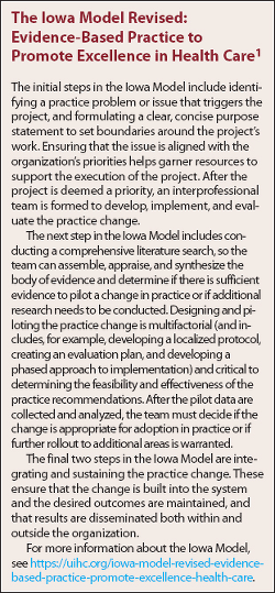 The biggest lesson learned was when the nurse manager, who served as the project opinion leader and was thus influential in promoting adoption of the practice change, left the clinic. Consequently, there was the beginning of a "drift" back to old practice habits, rather than maintenance of the new practice. Clear expectations helped change champions (the staff nurses and nurse care coordinator) provide ongoing training to sustain the practice when staff turnover occurred. The continued commitment to the project by the interprofessional team was essential for the successful transition of responsibility among clinicians throughout the course of this project.