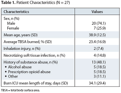It's well known that the high doses of opioids and anxiolytics often required for pain control during burn wound care can have significant adverse short- and long-term effects. Adverse short-term effects include respiratory depression, hypotension, brady- or tachycardia, and increased sedation. In our experience, another short-term effect is prolonged hospitalization, associated with difficulty in maintaining pain control when transitioning from high-dose IV to oral medications. Long-term consequences include tolerance, requiring higher doses of medications to maintain comfort, and an increased risk of physical dependence. In this study, a further concern was that nearly 50% of patients had substance abuse issues prior to hospitalization, which could increase the risk of continued substance abuse.