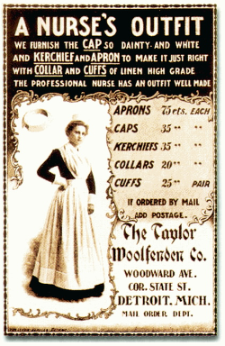 FIGURE 2 Throughout the years, advertisers have also supported this publication, recognizing the importance of nursing to their financial success. On these pages are some of the advertisements that appeared in the first issue of AJN-for "invalid chairs," analgesics, antipyretics, uniforms, and medicinal waters. My personal favorite is a quarter-page ad for Great Western Champagne. I would love to know the company's rationale for buying this ad space.