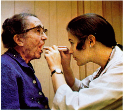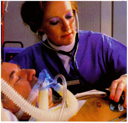 Pictured: An ICU nurse conducts a respiratory assessment.