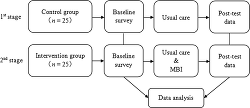 A two-group, nonrandomized, nonconcurrent designed was used to avoid ethical discrimination. If control group participants had been hospitalized at the same time as the intervention group, they could have learned about the intervention through communication with participants in the intervention group. They might have learned about the mindfulness practice and expected that it be integrated in their care. Thus, stroke survivors in the control group were invited first, followed by those in the intervention group. This resulted in the control and intervention group participants not being hospitalized during the same period.