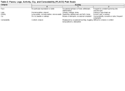 A patient's self-reported pain level is considered the most accurate measurement of pain (Joestlein, 2015). However, pain assessment in pediatrics can be especially challenging if the patient is unable to report his or her pain intensity because of age or developmental level. In addition, pediatric patients often mistakenly perceive anxiety as pain, and both their own and their parent's fears may amplify the child's perception of discomfort. Research has shown that children will often not report their pain without being asked (Drendel, Kelly, & Ali, 2011). Therefore, the assessing clinician must always ask the child about his or her level of pain. Clinicians caring for pediatric orthopaedic patients must also be aware of the pain scales appropriate for various developmental levels (Drendel et al., 2011). For infants, the Neonatal Infant Pain Scale is a validated tool used to differentiate expression of pain from general infant distress. Neonatal Infant Pain Scale includes assessment of facial expression, cry, breathing, movements of arms and legs, and alertness (see Table 1). Another tool validated for use in infants and children younger than 7 years is the Faces, Legs, Activity, Cry, and Consolability (FLACC), which considers five behaviors indicative of pain in pediatric patients (see Table 2; Drendel et al., 2011). The FLACC scale is especially useful in nonverbal children regardless of chronological age.