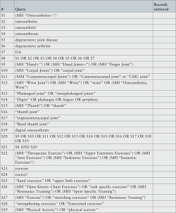 The reviewers aim to find both published and unpublished studies to identify all available evidence with regards to exercises for the management of hand OA. The three-step search strategy recommended by JBI would be utilized. A first limited search of CINAHL and MEDLINE (Appendix I) was undertaken using identified keywords and subject headings in consultation with an experienced librarian (PS). This was followed by the analysis of text words contained in the abstracts and titles of the retrieved papers, and index terms used to describe these articles. A second search using all identified keywords and index terms will be conducted across all selected published and unpublished literature sources. A third and final search will be the examination of the reference lists and citations of all included full-text records. Reviewers will contact authors of relevant studies and reviews for further information when appropriate. Records published in the English language from January 1998 until the present will be applied as limiters.