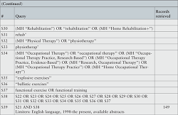 The published databases to be searched include: MEDLINE (EBSCO), CINAHL (EBSCO), Cochrane Library, PEDro, AMED, Web of Science and OT seeker.