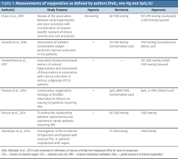Despite the resounding evidence that the administration of excessive oxygen places patients at the hands of iatrogenic harm, considerable variability remains regarding therapeutic levels of oxygen (Llitjos et al., 2016; Vincent, Taccone, & He, 2017). Although terms such as normoxia and hyperoxia exist, operational definitions are not consistent. As a result, the threshold at which cellular damage occurs remains undefined and is, therefore, difficult to protect against (Vincent et al., 2017). Within the six studies reviewed, normoxia is identified as a value between 60 and 300 mmHg, whereas hyperoxemia is identified as a value between 100 and upwards of 300 mmHg (Elmer et al., 2015; Girardis et al., 2016; Helmerhorst et al., 2017; Panwar et al., 2016; Rincon et al., 2014; Stolmeijer et al., 2014). As shown in Table 1, values that are considered to be severely hyperoxic in certain studies are considered normoxic in others. To find the delicate balance between the risk of hypoxia and hyperoxia, further research needs to be conducted to determine this value.