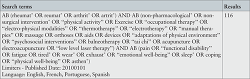 The following electronic databases/sources were broadly searched for published systematic reviews: CINAHL Plus with Full Text, PubMed, Cochrane Database of Systematic Reviews, Scopus, Embase, PsycINFO, PEDro, Epistemonikos, JBI Database of Systematic Reviews and Implementation Reports, the PROSPERO register, Campbell Collaboration Library of Systematic Reviews.