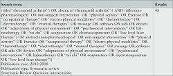 This umbrella review included systematic reviews that evaluated the effectiveness of non-pharmacological and/or non-surgical interventions in adult patients with RA with the aim of reducing its impact, used either as a single intervention or as part of multiple non-pharmacological and/or non-surgical interventions. Non-pharmacological interventions included, but were not limited to, any treatment that is not a registered drug,23 such as physical activity and exercise; hydrotherapy and balneotherapy; occupational therapy; electro-physical modalities such as thermotherapy, electrotherapy, and others; manual therapies such as massage, orthoses, aids, devices and adaptations of the physical environment and others; and psychosocial interventions. Non-surgical interventions were considered to be all interventions not related in any way to surgery. No limitations regarding frequency/intensity/who delivered the intervention were applied. Patients only received pharmacological treatment targeting the control of inflammation, according to international guidelines.32