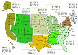 The greatest number of you works in the South Atlantic (22.5%), with East North Central (17.5%) and Middle Atlantic (13.9%) emerging as the next most represented areas. Each of the remaining geographic areas comprised 10% or less of the total respondents. Those of you who work in the Pacific region earn an average annual salary of $90,590, while those of you who live in the West South Central region earn the least at $69,140. All regional areas reported higher wages than last year, with the largest percentage increase in the Pacific (14.7%) and the lowest in New England (1.4%). (See "Average salary by region.")