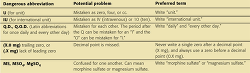 The Joint Commission on Accreditation of Hospitals and Healthcare Organizations (JCAHO) recently expanded its 2004 National Patient Safety Goals. These goals now include a list of "dangerous" abbreviations, acronyms, and symbols that you shouldn't use in clinical documentation. They apply to "all handwritten, patient-specific documentation," but also should be applied to computer documentation as software programming is adjusted and as stocks of preprinted forms are used up. The guidelines cover all clinical documentation, including order forms and documentation, progress notes, consultation reports, and operative reports.