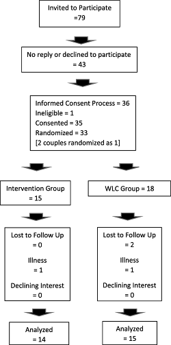 This pilot study was approved by the institutional review boards at the two participating university institutions. A randomized, two-group with wait list control (WLC), repeated-measures design was used to test the effect of the intervention on balance and falls as an interim step to conducting a larger, fully powered study (Conn, Algase, Rawl, Zerwic, & Wyman, 2010; Feeley et al., 2009).