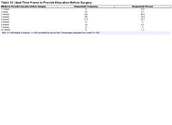 Participants most commonly identified that having patients attend preoperative education 2 weeks before surgery was ideal (n = 192; 40.9%), followed by 4 weeks (n = 113; 24.1%). See Table 10 for frequency of responses.