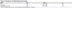 Three variables predicted SNF disposition in the binary logistic regression model: age, sex, and cardiopulmonary disease. With each 1-year increase in age, patients were 8% (odds ratio [OR] = 1.08; p = .012) more likely to go to an SNF. Although not significant, women were 94% more likely to be discharged to an SNF (OR = 1.94; p = .114), which contributed to the overall model. Those with cardiopulmonary disease were 12 times more likely (p = .018) to go to an SNF. Of the 46 patients (36.8%) who went to an SNF, 45 (97.8%) had cardiopulmonary disease, which also explains the wide confidence interval. Approximately 21% of the variance for SNF disposition was explained by the three variables (seeTable 3).