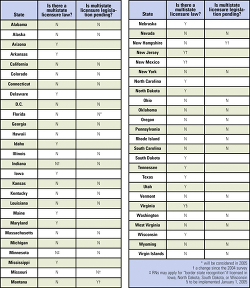 The ability of nurses to practice in more than one state is often limited by onerous procedures in the application process for licensure in a new state. Multistate licensure has been a concern also of nurses working in the area of telehealth, in which communication with patients may involve crossing state lines. Some states have, or are considering instituting, laws that permit a nurse residing in one state to practice in other states that participate in a multistate licensure agreement. When AJN asked the state (or district) bodies that handle licensure to supply information, it included two questions on multistate licensure legislation.