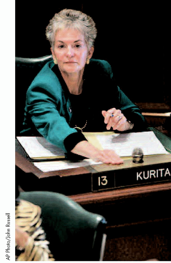 In 1996 Kurita ran for the Tennessee State Senate and won. Health care was a top priority for the nurse-turned-politician-one of her first efforts focused on requiring bicycle helmets for children.