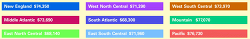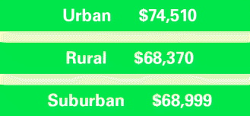 The average annual salary for NPs working full-time was $70,960; 9.4% reported salaries more than $95,000, and only 2.8% reported salaries of $35,000 or less. Salaries varied based on geographic location, with the highest average annual salaries in urban areas ($74,510) and the Mountain States ($77,070), and the lowest in rural areas ($68,370) and the East North Central States ($68,140). The average hourly rate for NPs working part-time was $35.10, and 2.8% reported earning more than $50 per hour.