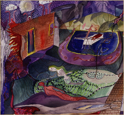 Williams twice attended nursing school but was unable to complete her training because of health problems. She says, "In making this painting I used visual narrative to explore the feelings I had about having to put something on hold. Symbols can be personal or universal, and in this painting some are both: the body as it folds from life to death, branching roots, flowing water. If you look closely you'll see there's even a capped nurse waiting in the wings." Contact author: 49 Central Avenue, Ravena, NY 12143; [email protected].
