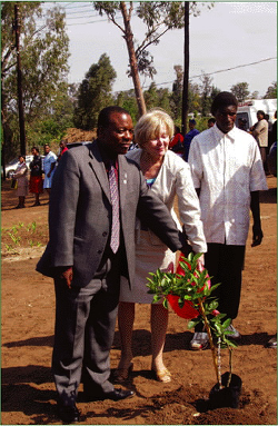 At the official opening of the Swaziland Wellness Centre for Health Care Workers in Manzini on September 28, Njabulo Mabuza, the minister of Health and Social Welfare, and Linda Carrier-Walker, of the International Council of Nurses (ICN), plant a tree in the garden.