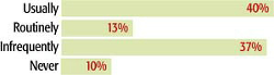 Thirty-five percent say that physicians routinely make rounds with them; 65% say this isn't done regularly.