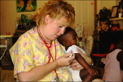 But with 350 referrals a month in St. Louis and 100 a month in Tennessee, it's clear to Rohrbach that babies are falling through the cracks. She points out that the United States ranks near the bottom among industrialized countries in infant mortality. "Our health care system needs to lower the infant mortality rate by making sure that people without insurance and those on Medicaid can get preventive care."