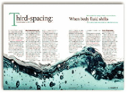 Thank you for "Third-Spacing: When Body Fluid Shifts" (July 2008).* I was a medical/surgical nurse for over 20 years before moving to the ICU, and yes, I know about third-spacing. But this article has given me such a complete understanding of the process that I now feel better prepared to care for patients experiencing third-space fluid shifts.