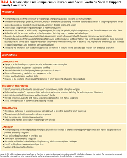 * describe the competencies that nurses and social workers need to best support family caregivers.